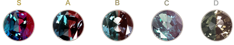 通常光では青緑、光源が変われば赤紫に変色をする珍しい宝石でその希少性の高さから、