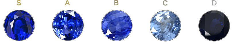 サファイアは画像S~Dのように鮮やかなブルーから、くすんだブルーと色みは様々ですが、