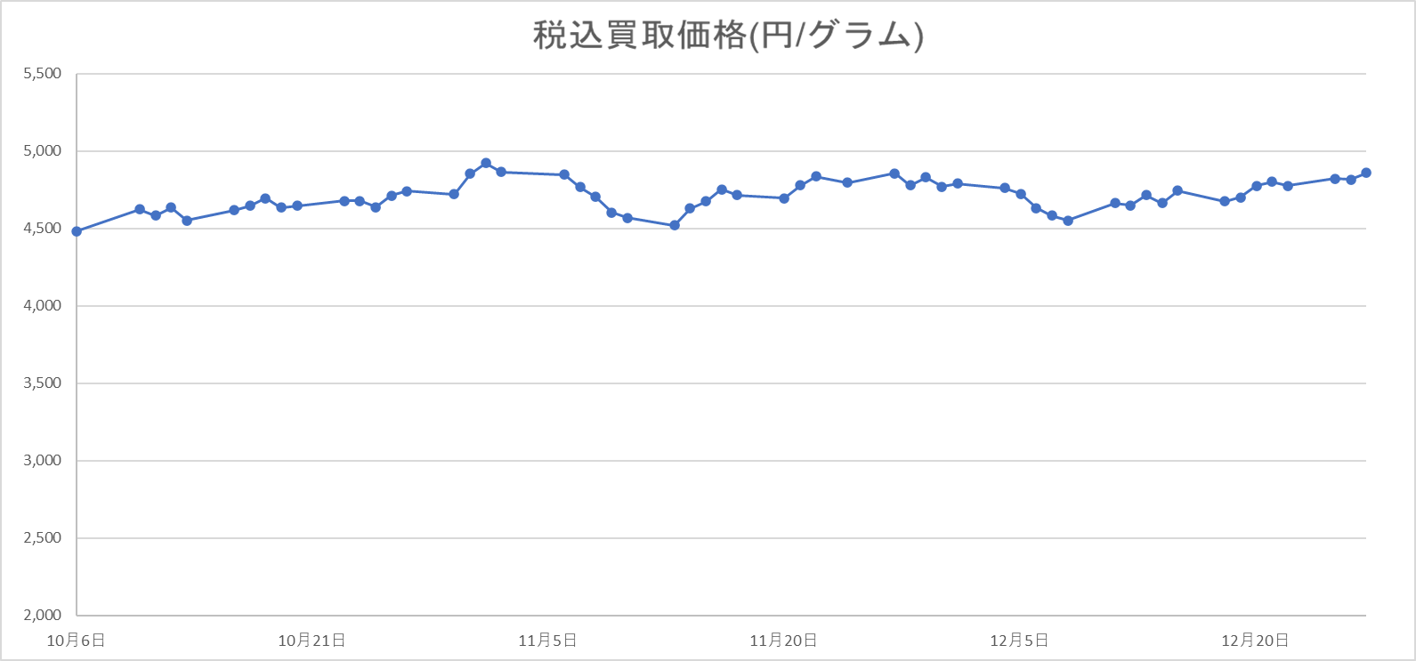 | 日付 | 税込買取価格(円/グラム) |