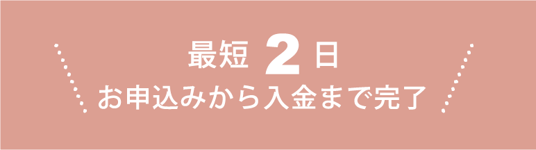 ご入金も当日~翌営業日15時までとスピーディ!